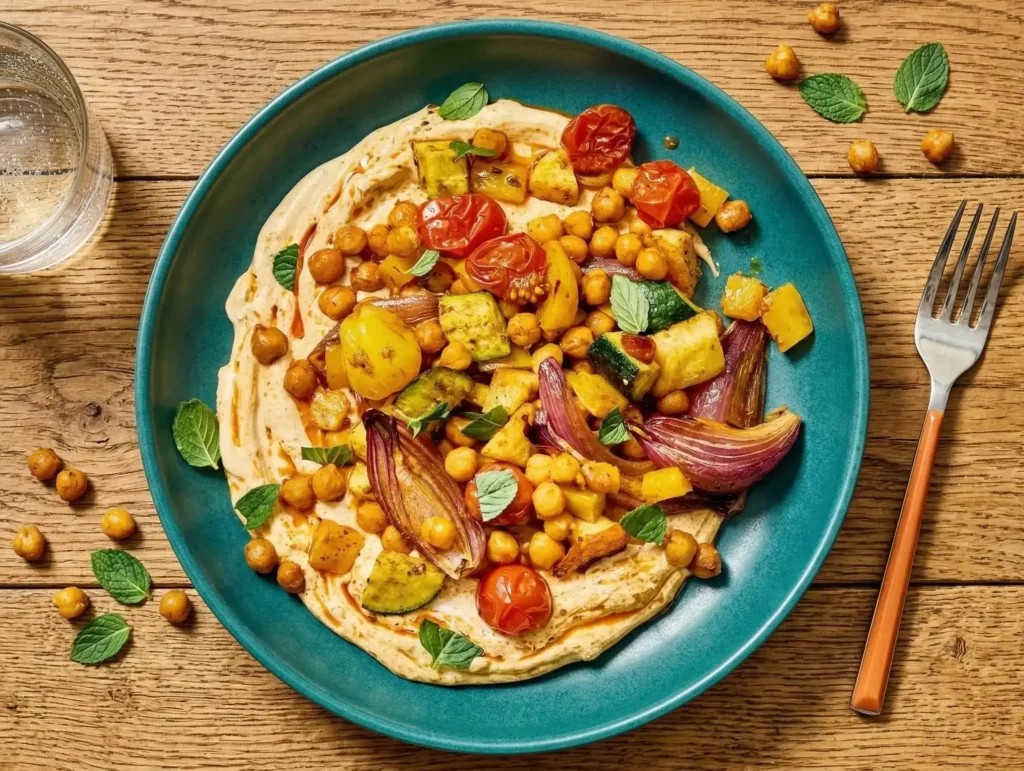 This Chicken hummus bowl is full of fibre, antioxidants, and healthy fats, with tender chunks of chicken, creamy hummus, and fresh veggies, a perfect high-fibre, high-protein meal for busy weekdays.